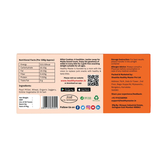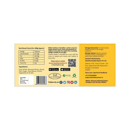 We at Healthy Master have carefully researched and studied what our customers’ tastes and preferences look like. According to it, we have curated a collection of healthy millet snacks that bring together taste and nutrition in perfect harmony. Each of our products is made to satisfy your cravings while nourishing your body with the goodness of ancient grains, so that you don't have to compromise your taste for your health. Some of our best sellers from millet snacks online are: