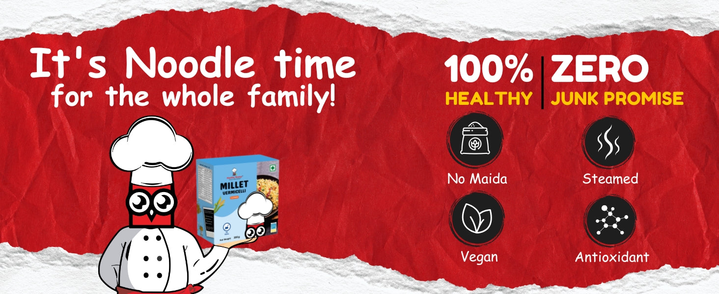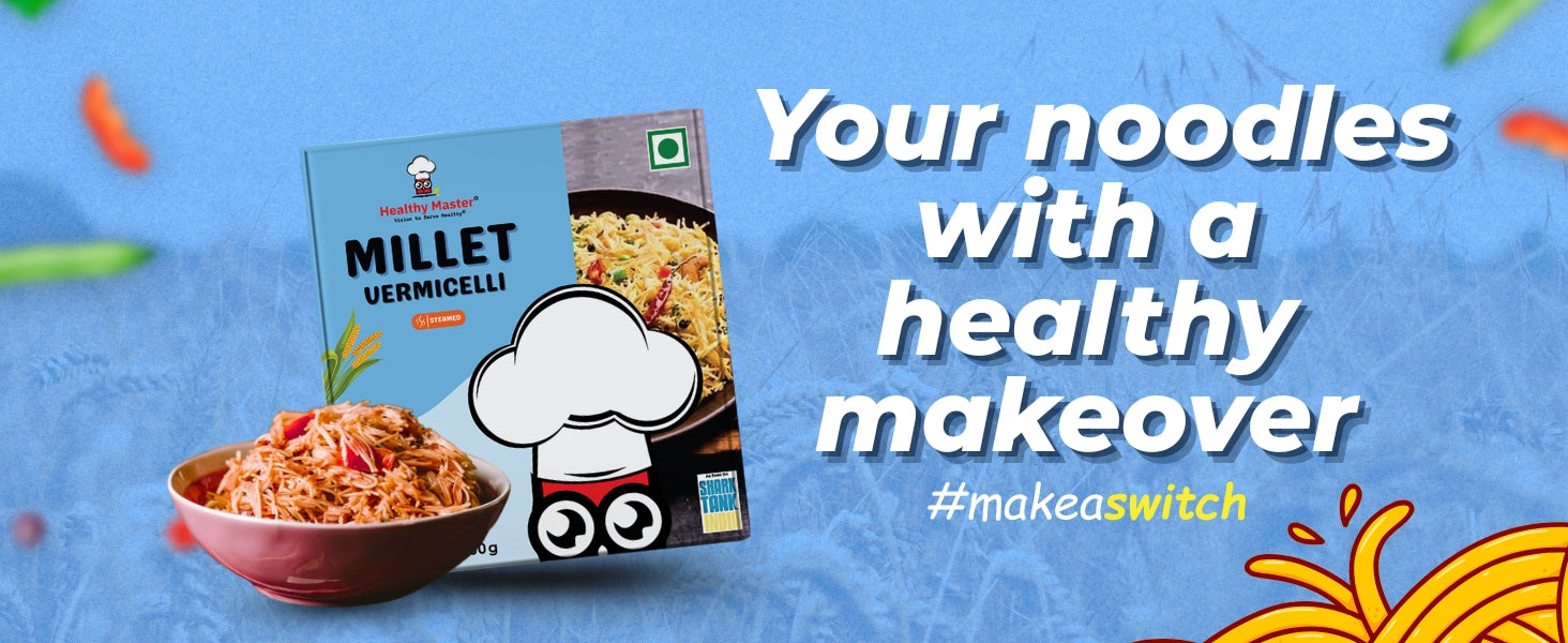 1)What is the storage and shelf life of Millet Vermicelli? It can be stored in an airtight container and the shelf life is 4months 2)What is special about Healthy Master's Millet Vermicelli? 3)Can this be given to kids? YES It is easy to digest, ideal for 1+ years kids and above & suitable for all age groups 4)How many portions it serves? 2 portion