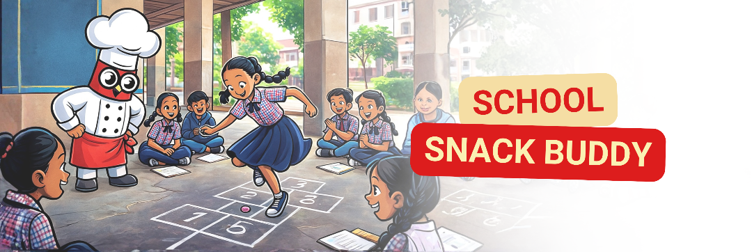 School time snacks on a box basis with the best price for kids. For the whole month, 40 different types of healthy-tasty-munchy snacks would be served to our champs.