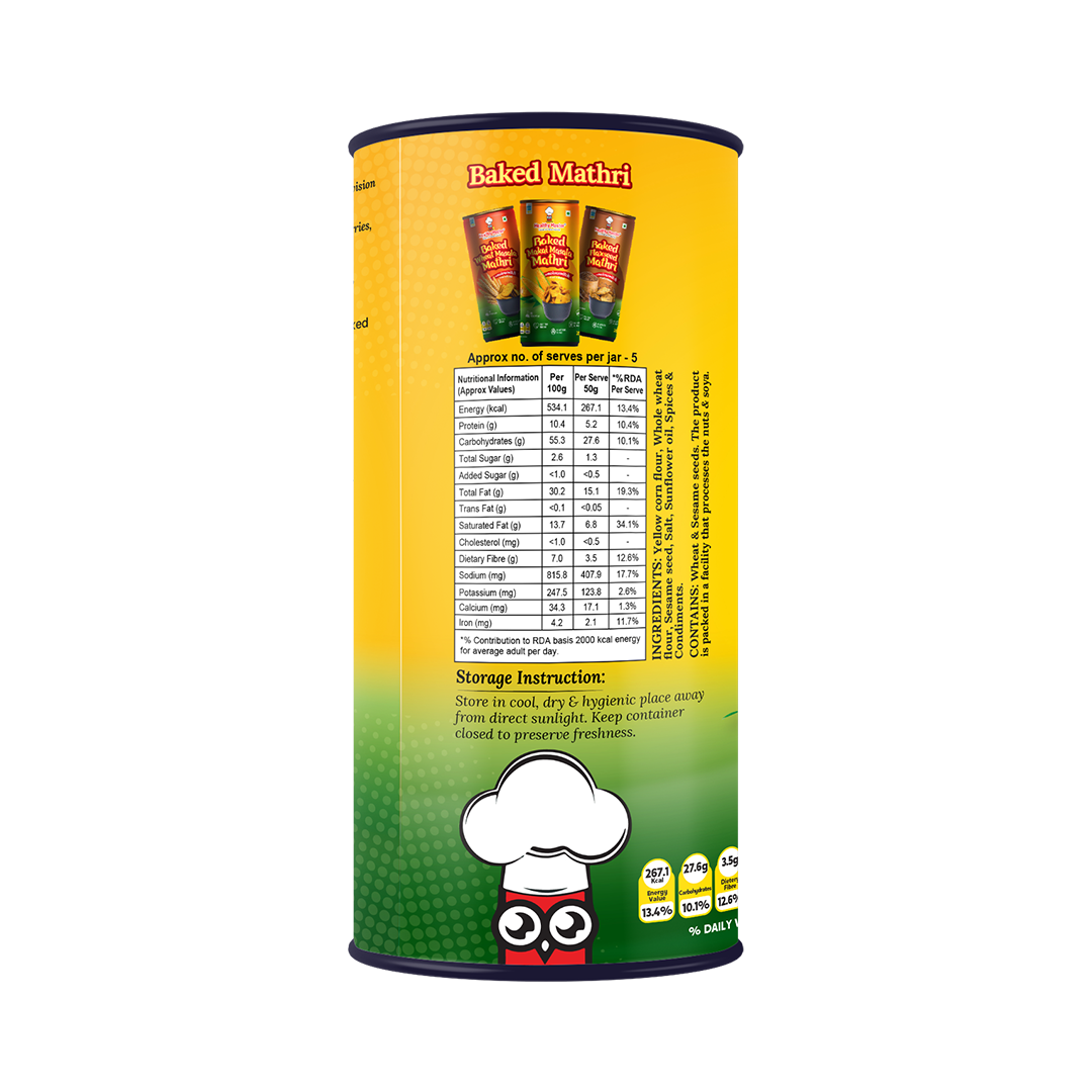 1)What is the storage and shelf life of Baked Makai Masala Mathri?