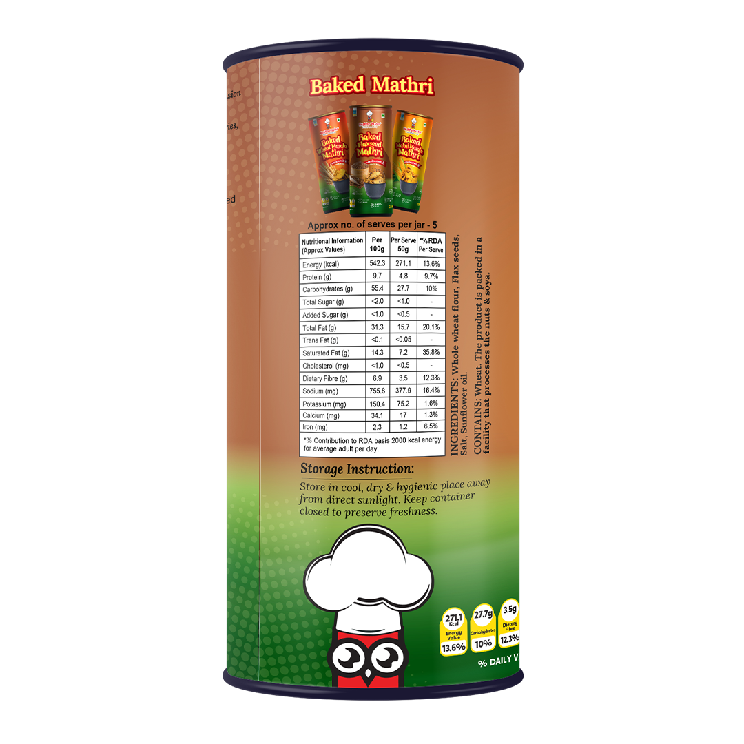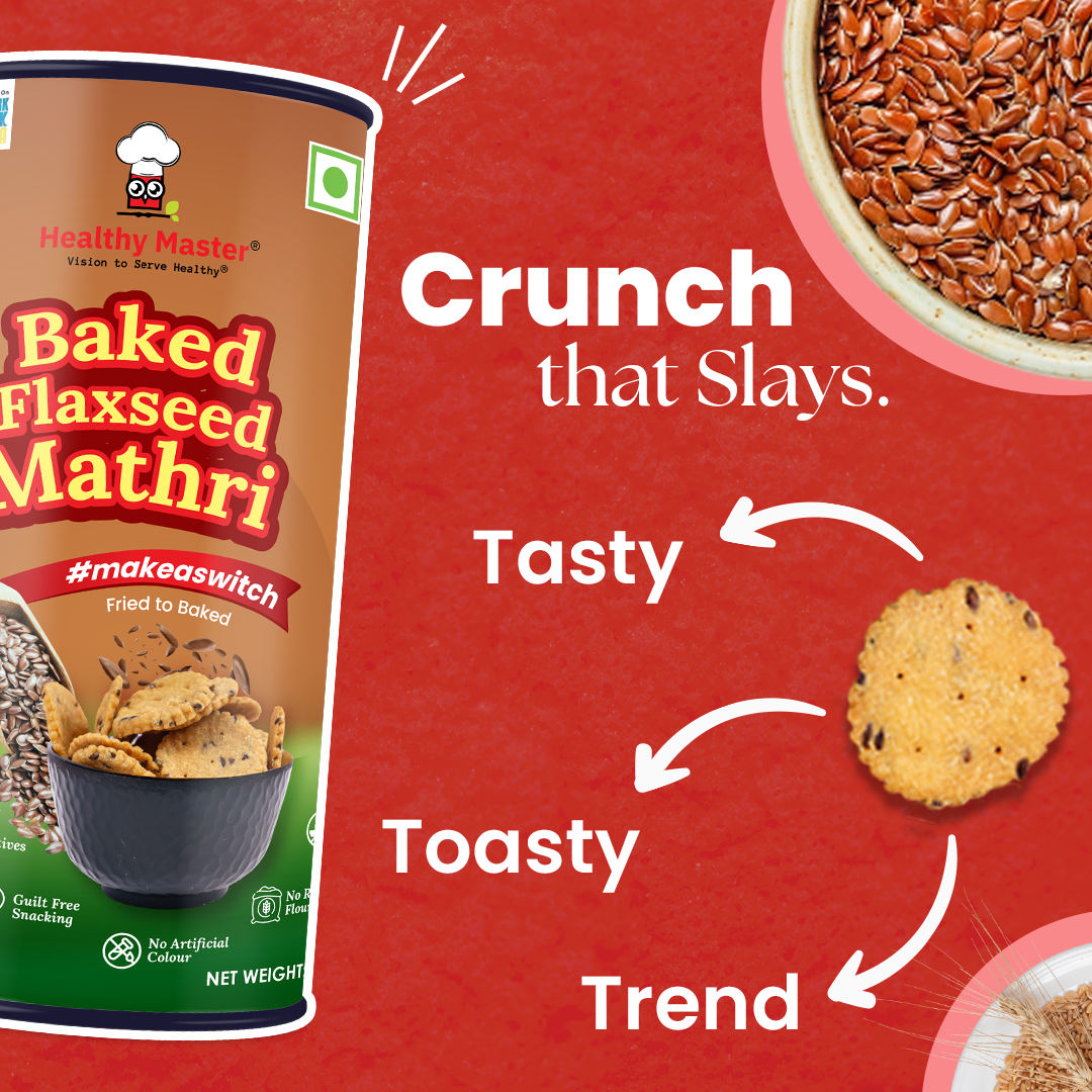 By adding flaxseeds, a superfood that contains a high amount of proteins, complex carbs, high fiber, healthy fats along with minerals like magnesium and phosphorus. Flaxseeds add a layer of immunity-boosting properties to the ever-delicious wheat masala mathri thus making even the most health-conscious person add it to their diet without feeling any guilt.