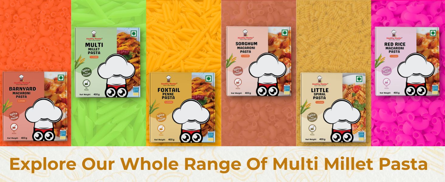 The millet pasta is a high-fiber alternative to traditional pasta and noodles that are made with Maida. It helps you to control cholesterol levels in the body and maintain an ideal blood pressure level. Unlike Maida-based noodles and pasta, millet-based pasta contains essential amino acids and B complex vitamins like thiamin, niacin, and folic acid.