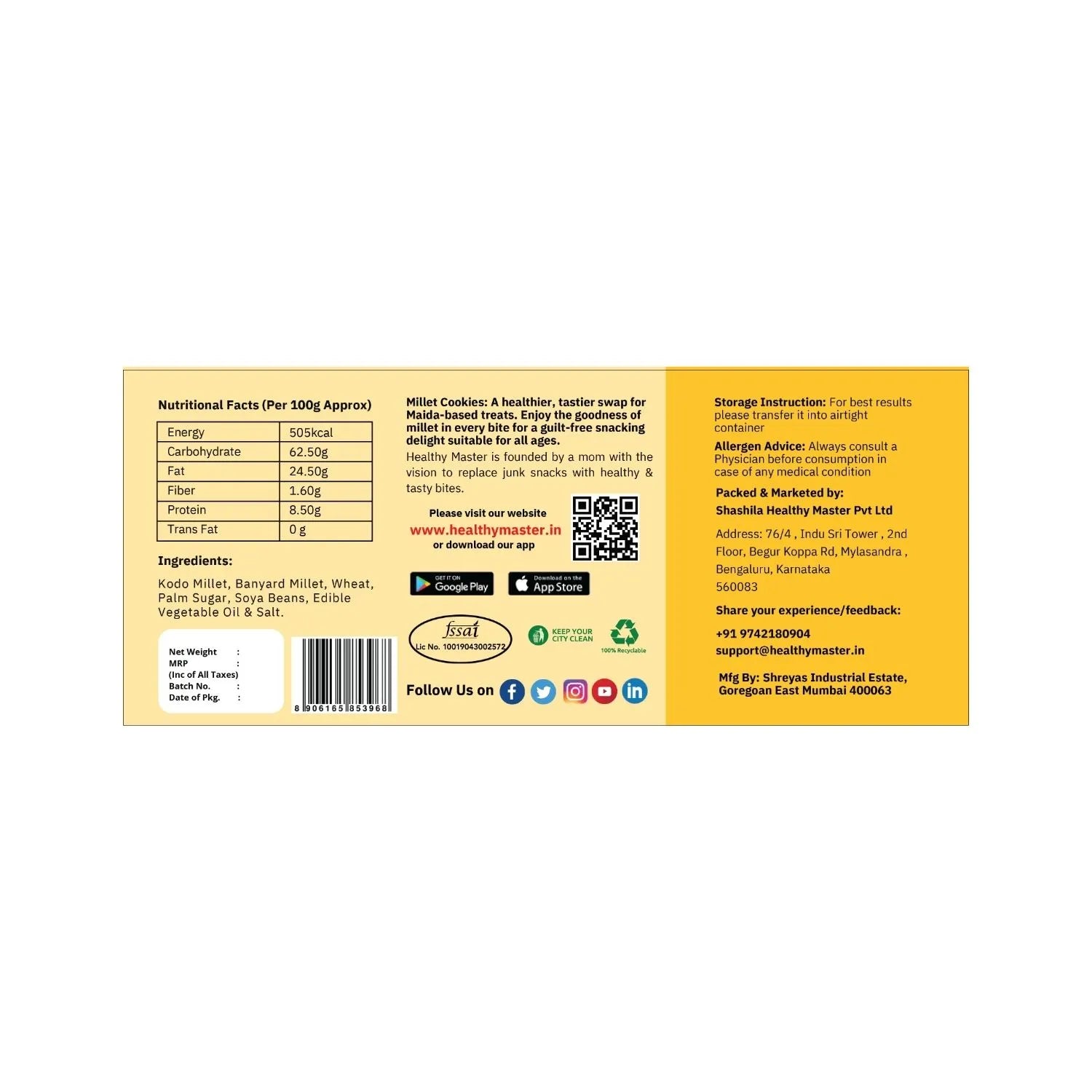 1)What is the storage and shelf life of Multi Millet Palm Sugar Cookies? It can be stored in an airtight container and the shelf life is 4months 2)What is special about Healthy Master's Multi Millet Palm Sugar Cookies? 3)Can this be given to kids? YES