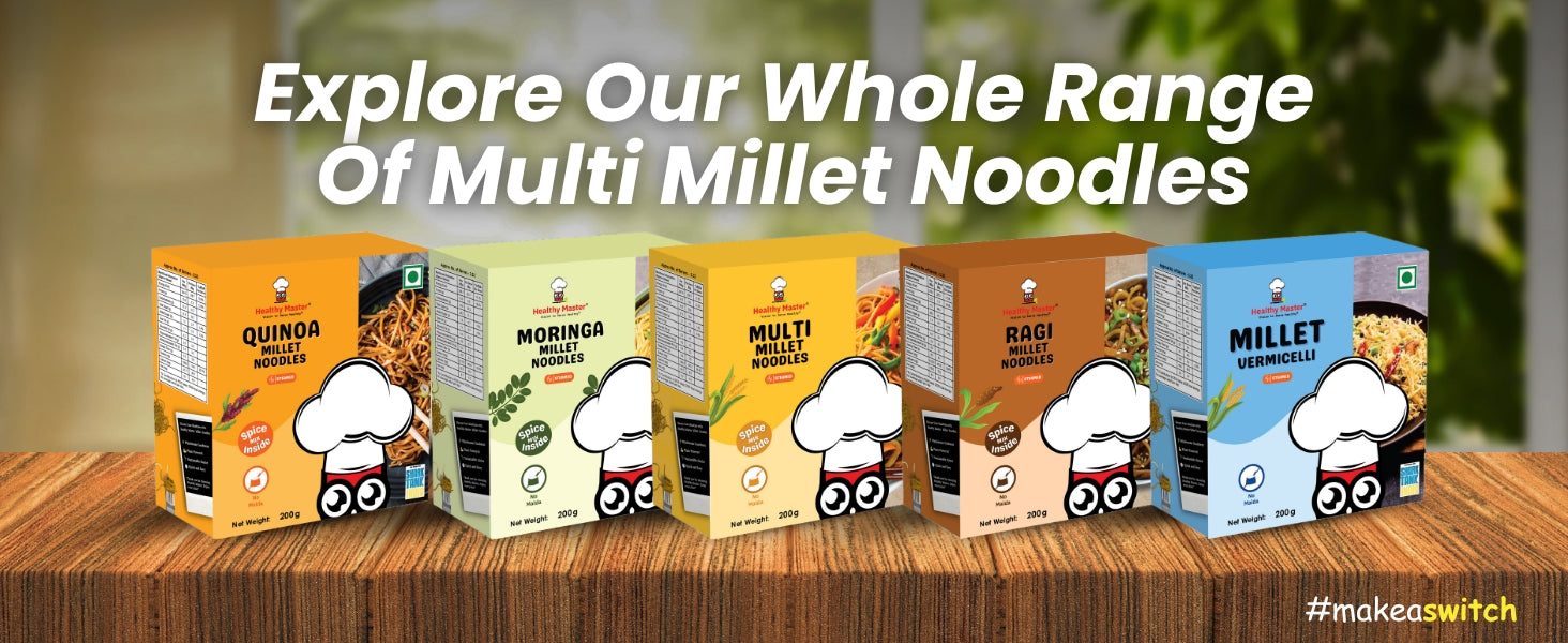 The millet vermicelli is a high-fiber alternative to traditional pasta and noodles that are made with Maida. It helps you to control cholesterol levels in the body and maintain an ideal blood pressure level. Unlike Maida-based noodles and pasta, millet-based pasta, noodles, and vermicelli contain essential amino acids and B complex vitamins like thiamin, niacin, and folic acid.