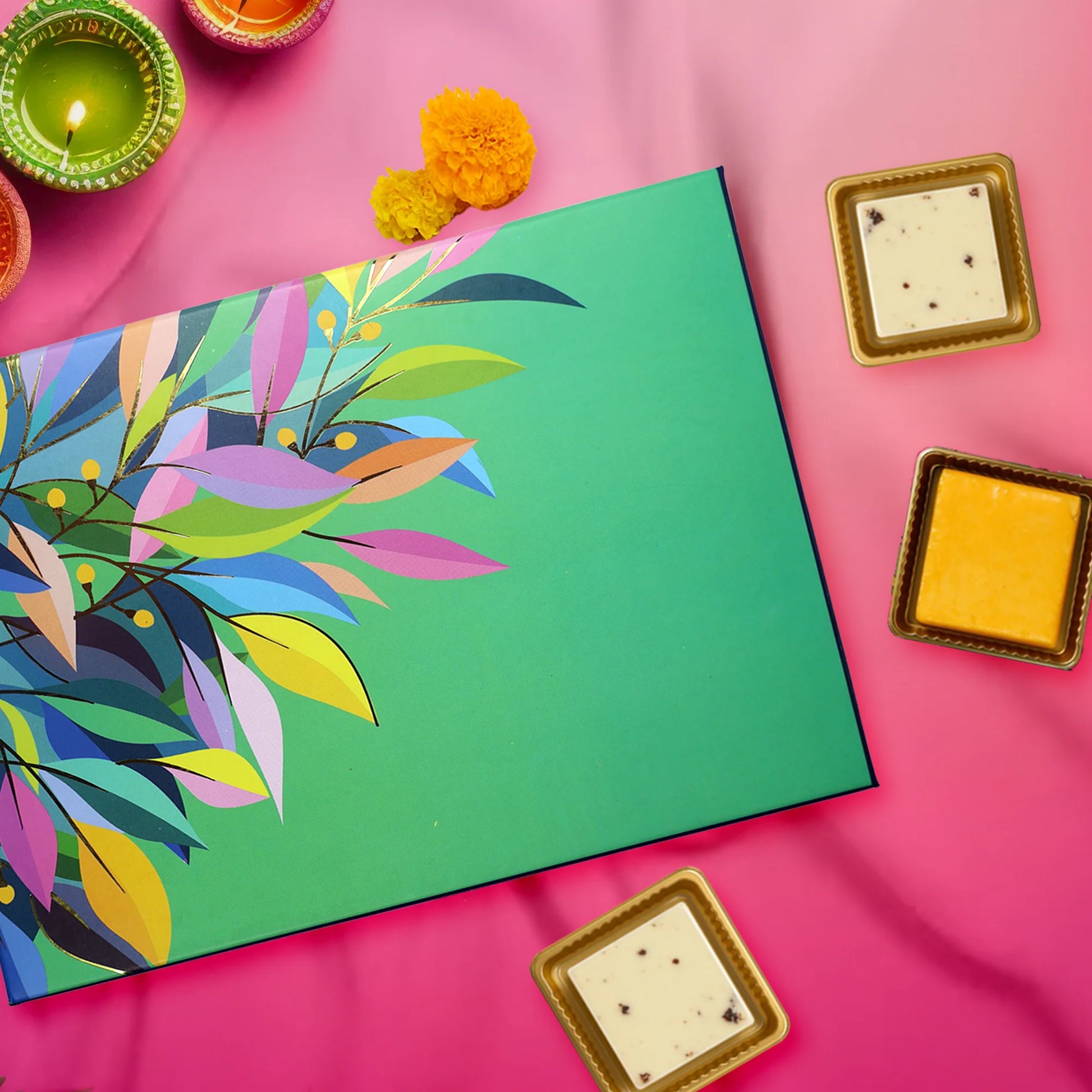 Pure Treats Box for your Diwali celebration is a perfectly balanced collection that offers six tropical chocolate bites alongside six classic chocolate bites, creating a harmonious symphony of flavors that satisfies diverse palates with equal attention to both varieties.