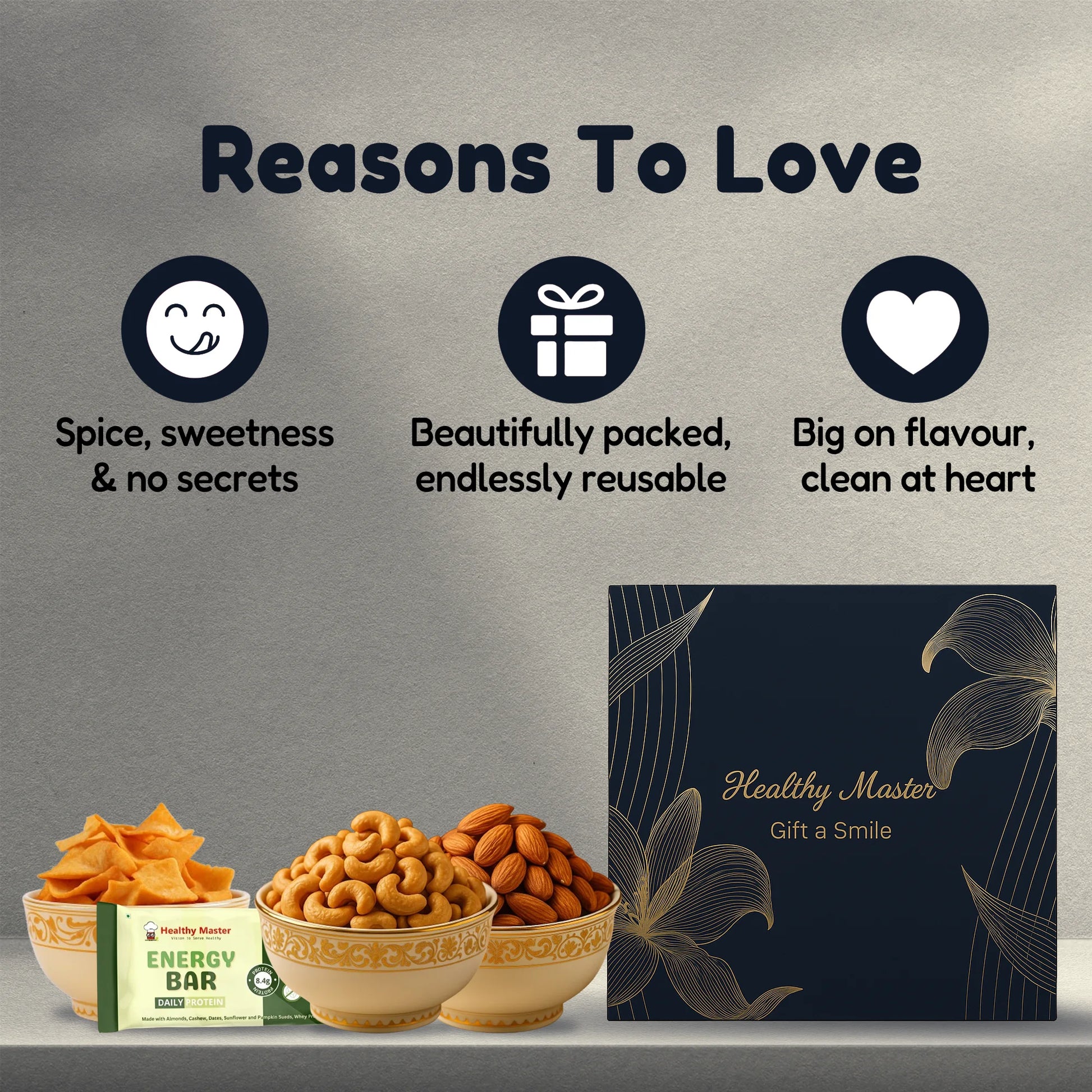 Healthy Master’s Diwali gift hampers are filled with nutritious, guilt-free snacks, ensuring that your loved ones enjoy festive treats without compromising their health. Each hamper is curated with the finest quality dry fruits, seeds, and traditional healthy snacks, making your gifts not only tasty but also packed with essential nutrients. With a variety of hampers to choose from, you can select the perfect gift to suit personal preferences, whether it’s for family, friends, or corporate gifting. Stand out by gifting something meaningful and wholesome. Healthy Master’s hampers are ideal for spreading health and happiness during the festive season, making your gifts memorable. Healthy Master ensures fast and reliable delivery, so your Diwali gift hampers arrive on time, helping you celebrate the festival without any last-minute worries.Benefits of Choosing Our Diwali Products: