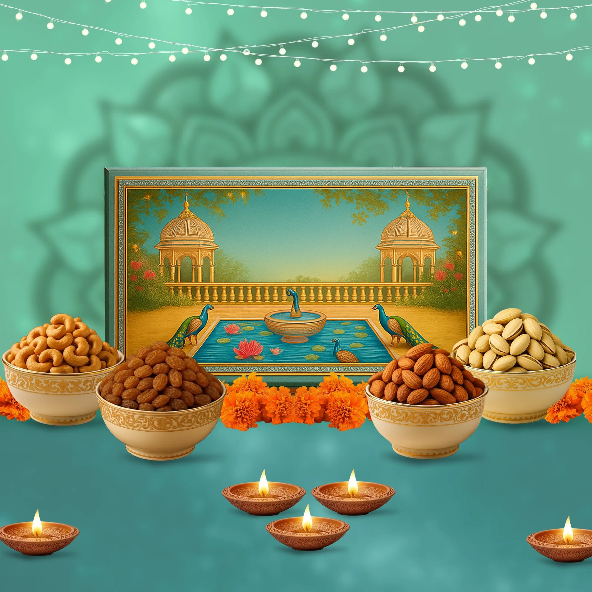 Our products are sourced and crafted with the highest quality standards to ensure a delightful and satisfying experience. Our snacks, dry fruits, nuts, and seeds are not only delicious but also nutritious, promoting a healthier lifestyle. Personalize your Diwali gift to your liking with our wide range of customizable options, including add-ons and greeting cards. Enhance your Diwali celebrations with our festive additions like candles, diyas, and lights, creating a warm and joyful atmosphere. Our Diwali gifts are perfect for expressing your love and best wishes to friends, family, and colleagues, making them feel truly special. We offer corporate gifting options, making it easy for businesses to share the spirit of Diwali with their clients, partners, and employees. Our user-friendly website allows you to browse, select, and order Diwali gifts with ease, ensuring a hassle-free shopping experience. We strive to deliver your Diwali gifts promptly, ensuring they reach your loved ones in time for the festivities.Benefits of Choosing Our Diwali Products: