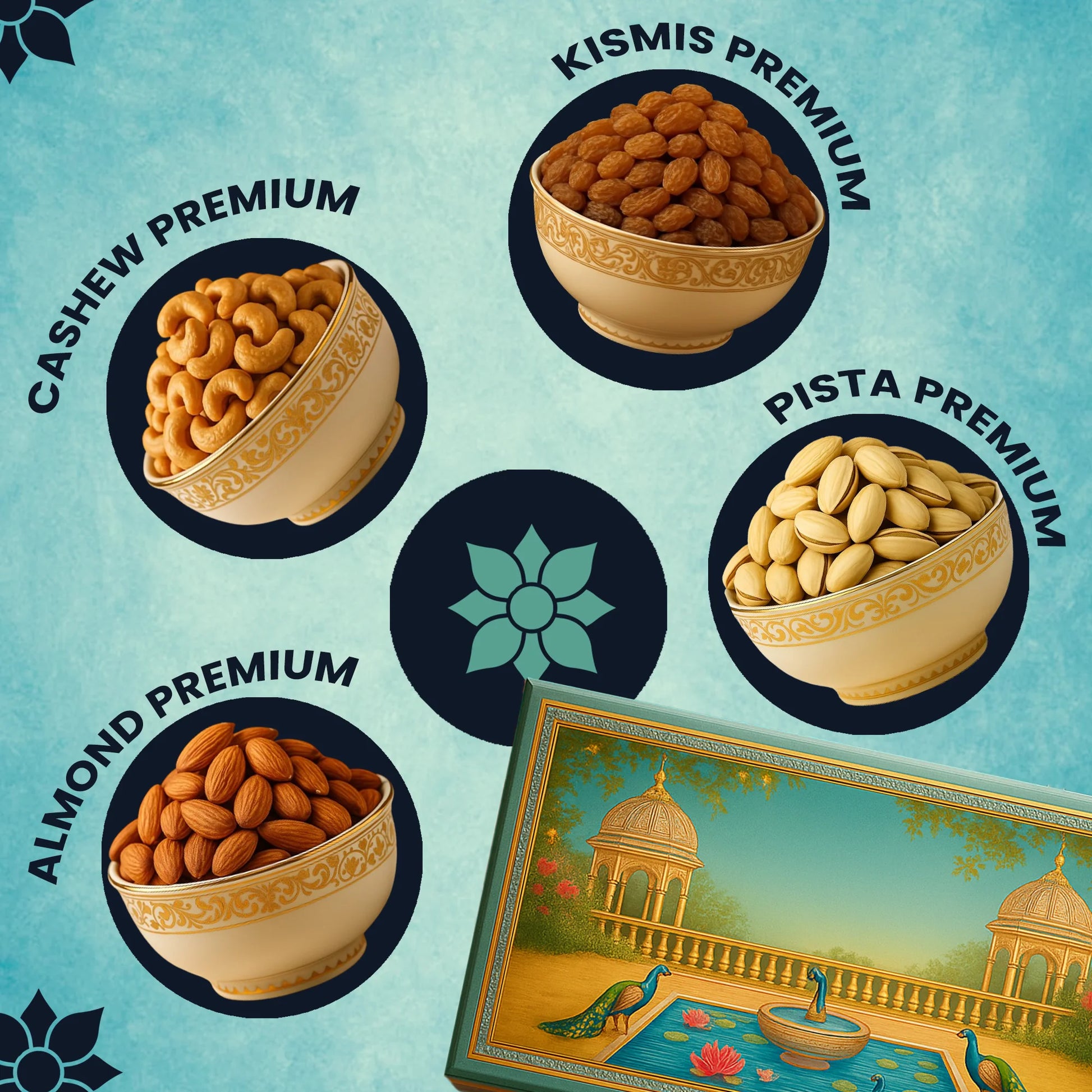 Celebrate the essence of purity, wellness, and festive joy with the Sattvik Spark Box – a thoughtfully curated hamper filled with the goodness of premium dry fruits. Symbolizing prosperity, energy, and nourishment, this box is the perfect gift for festivals, family gatherings, or corporate celebrations.