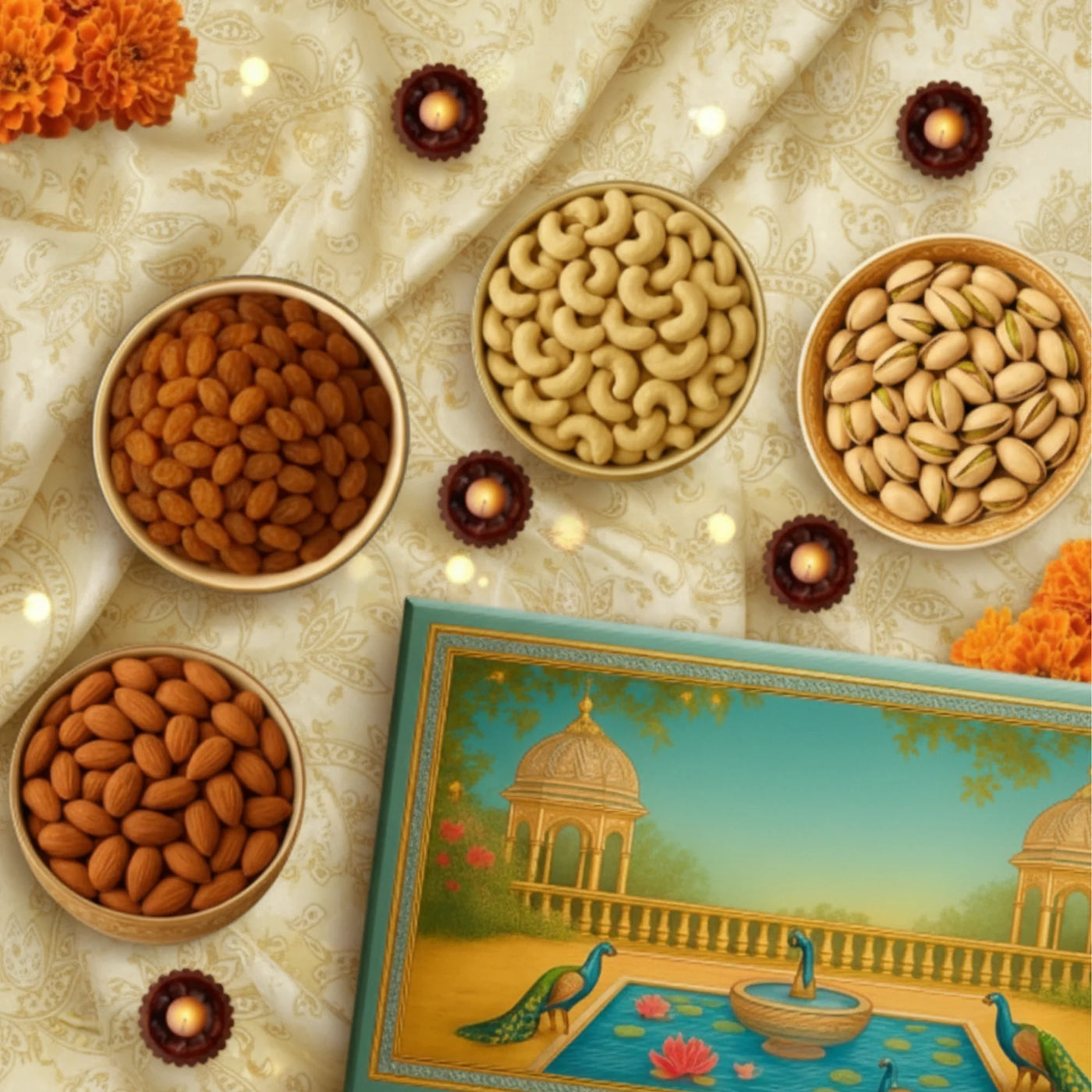 We offer a wide range of Diwali gifts, including healthy snacks, dry fruits, nuts, seeds, and customizable gift boxes and hampers. You can also add greeting cards, candles, diyas, and lights to make your gift extra special.