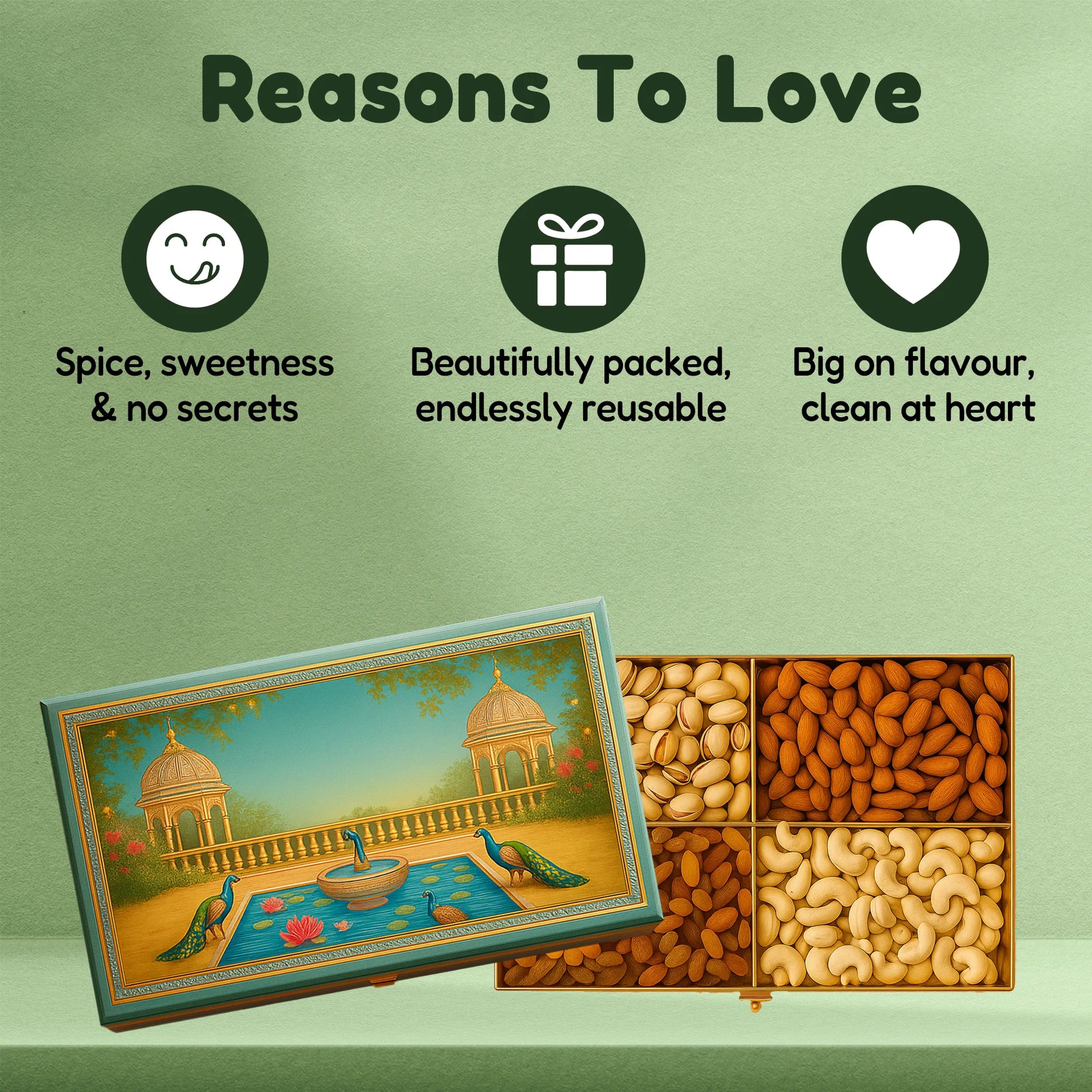 Whether it’s for Navratri, Diwali, weddings, or corporate gifting, this box of sattvik goodness fits every occasion. It’s a mindful choice for those who want to share not just festive joy, but also the promise of health and prosperity.